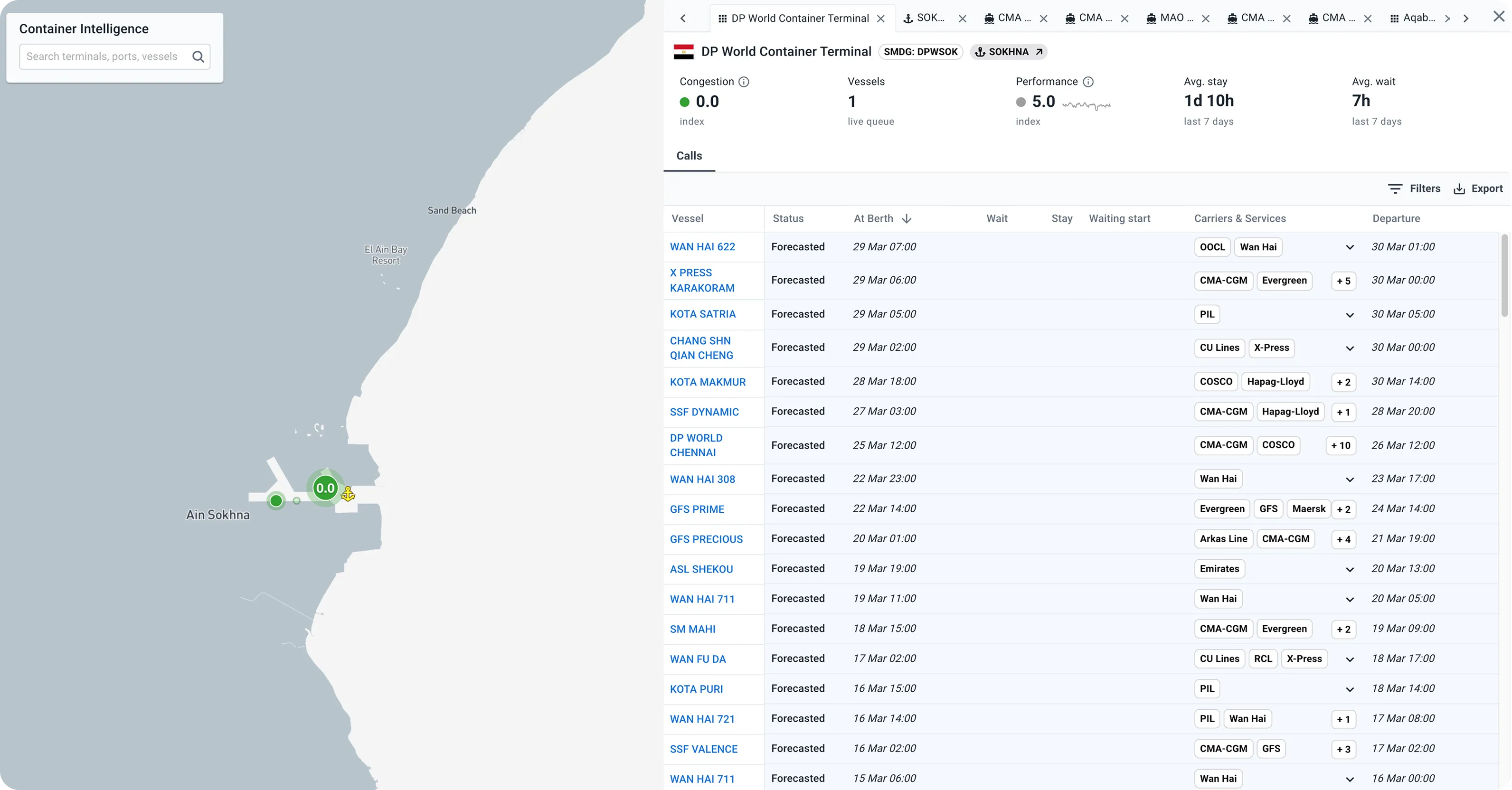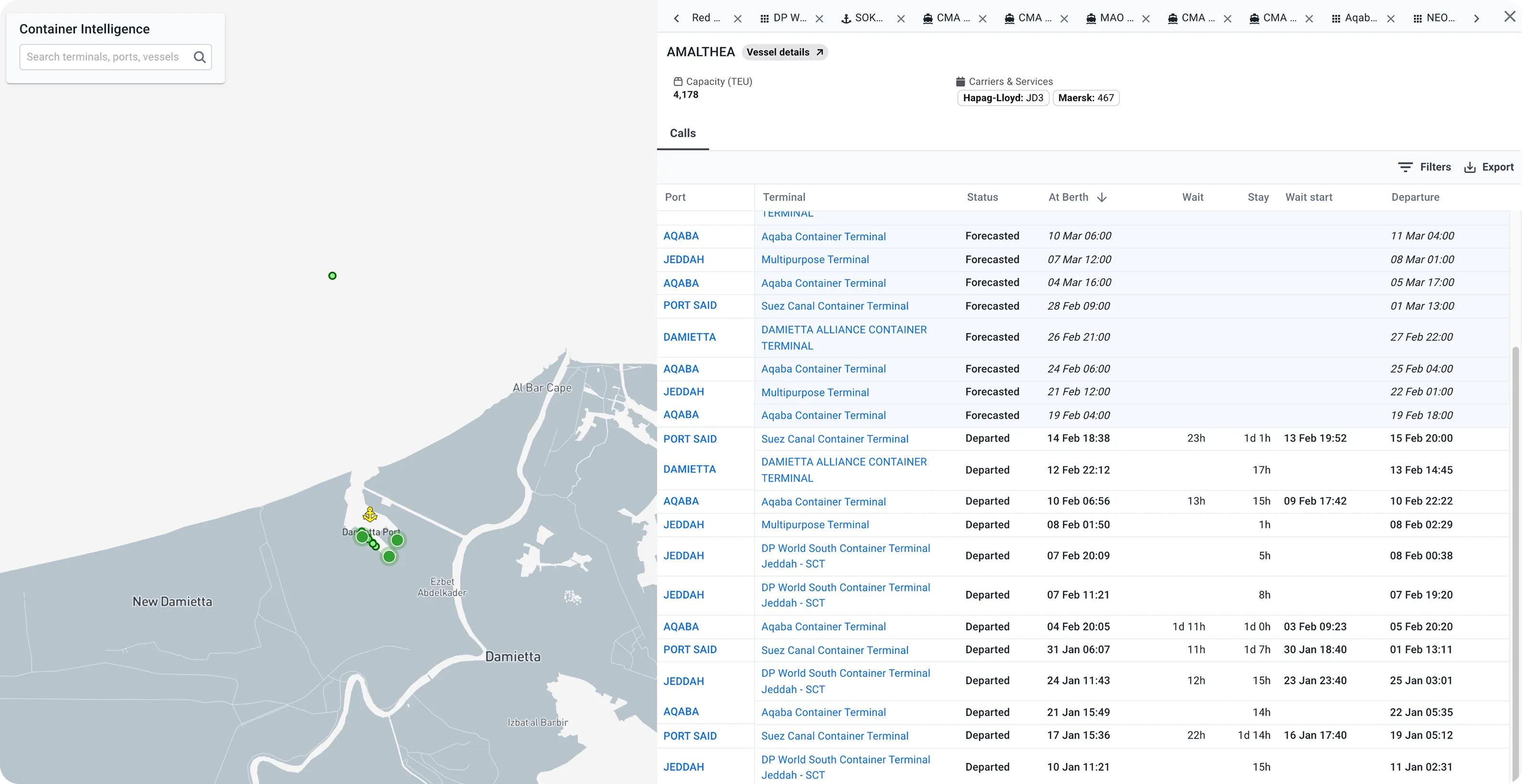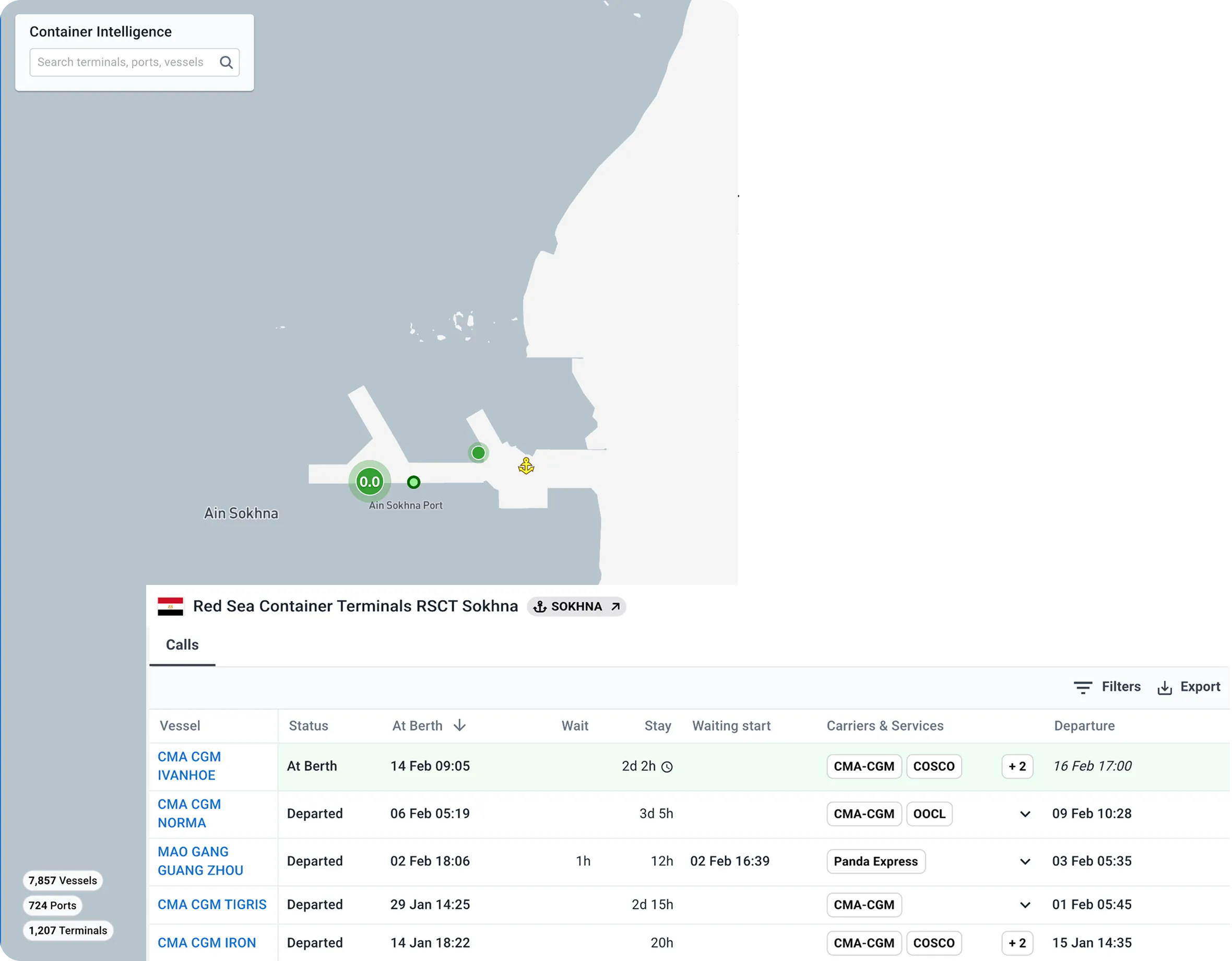 The platform delivers a global view of terminal operations, enabling users to contextualise RSCT's activity within the broader Red Sea and Mediterranean network. This visibility supports more informed decision-making for cargo routing and carrier selection.