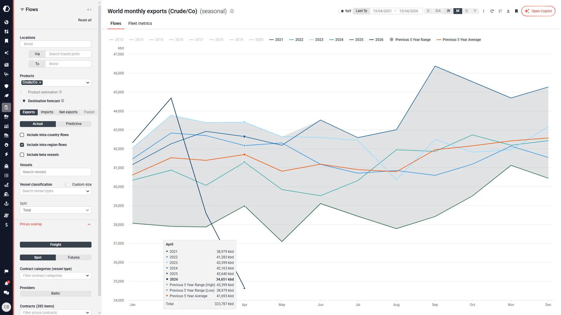 Tap into Kpler’s significant 15+ year history along with data on buyers and sellers involved within trades in order to create accurate seasonal analysis across major commodity markets and regions to identify discrepancies within seasonal trends and take action.