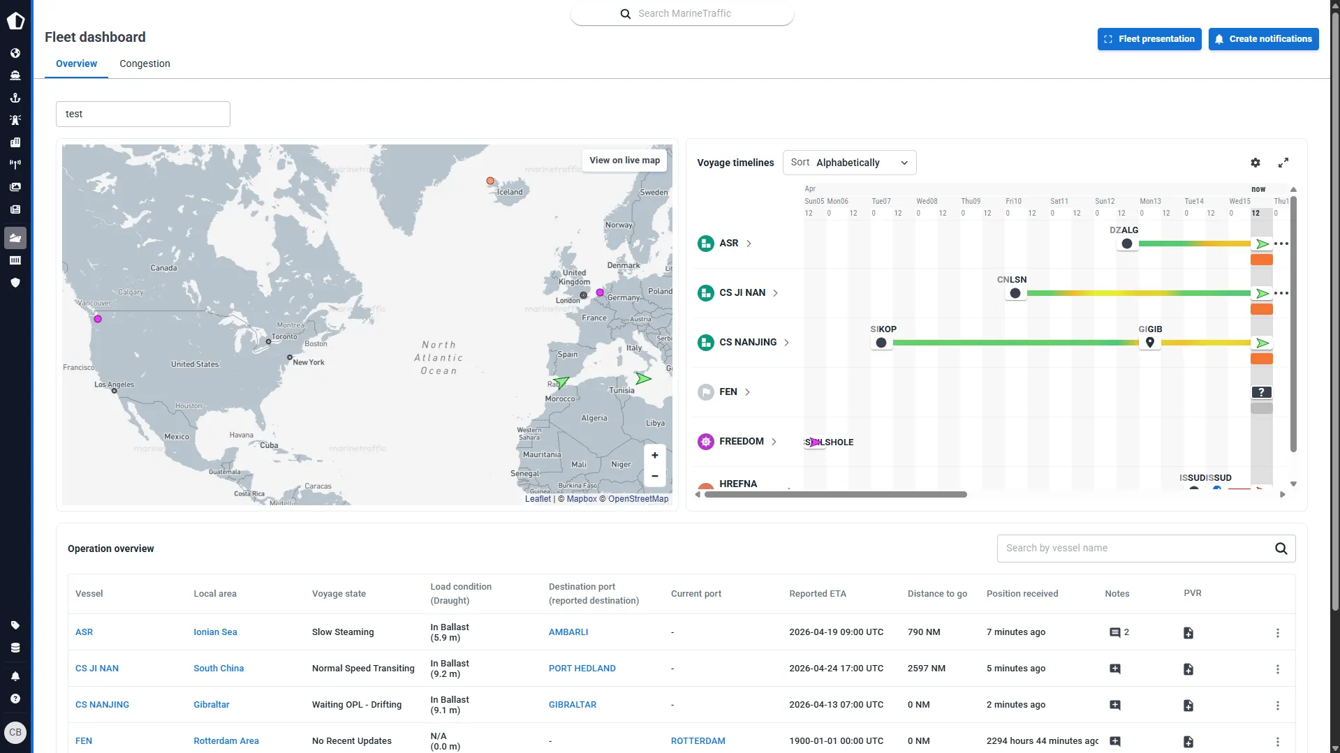 Eliminate the hassle of searching through emails or making calls to track vessel locations and voyage status. With the fleet dashboard, access a centralized source of truth that provides a complete picture of your fleet’s operations with just one click. Monitor vessel speed, voyage details, and load conditions in real-time, saving valuable time and ensuring consistency across your team.