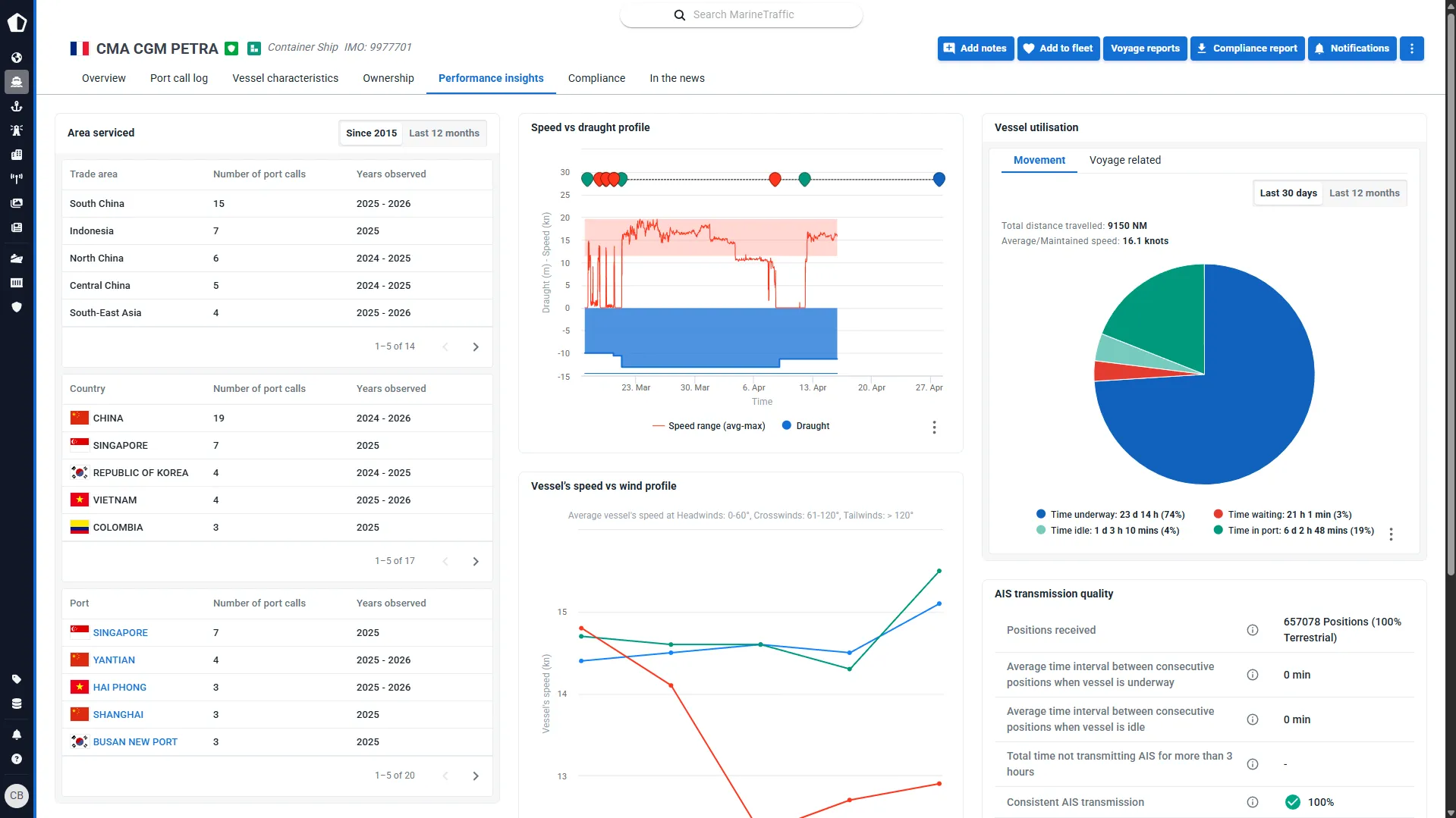 Investigate vessel performance and history and advise clients with confidence on the best options for their cargo or circumstances. Track vessels and be notified of route deviations, weather concerns or other potential disruptions and keep your clients updated with accurate and reliable information.