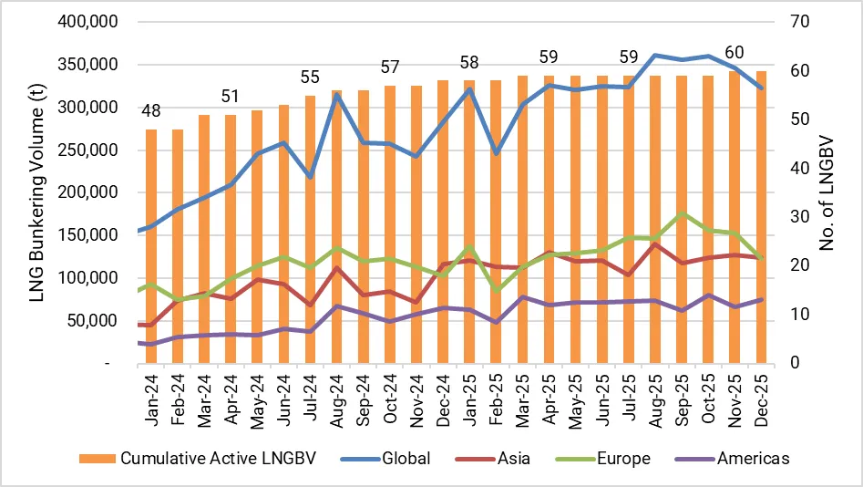 Note: Active LNGBV exclude operating LNGBV that never conducted LNG bunkering activity since 2023